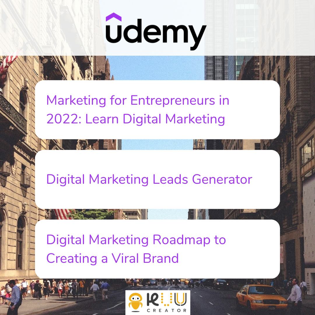 - Marketing for Entrepreneurs in 2022: Learn Digital Marketing https://www.udemy.com/course/entrepreneur-marketing/
