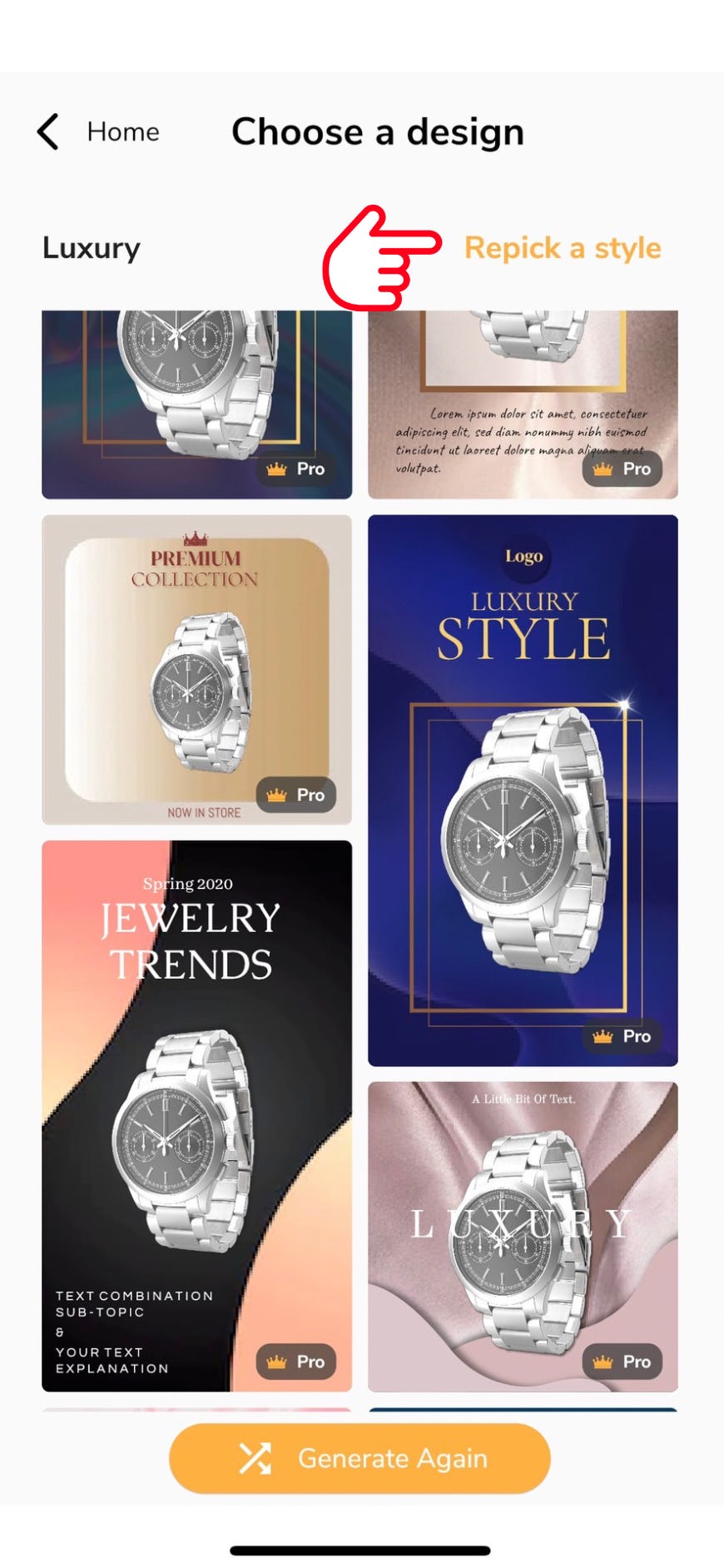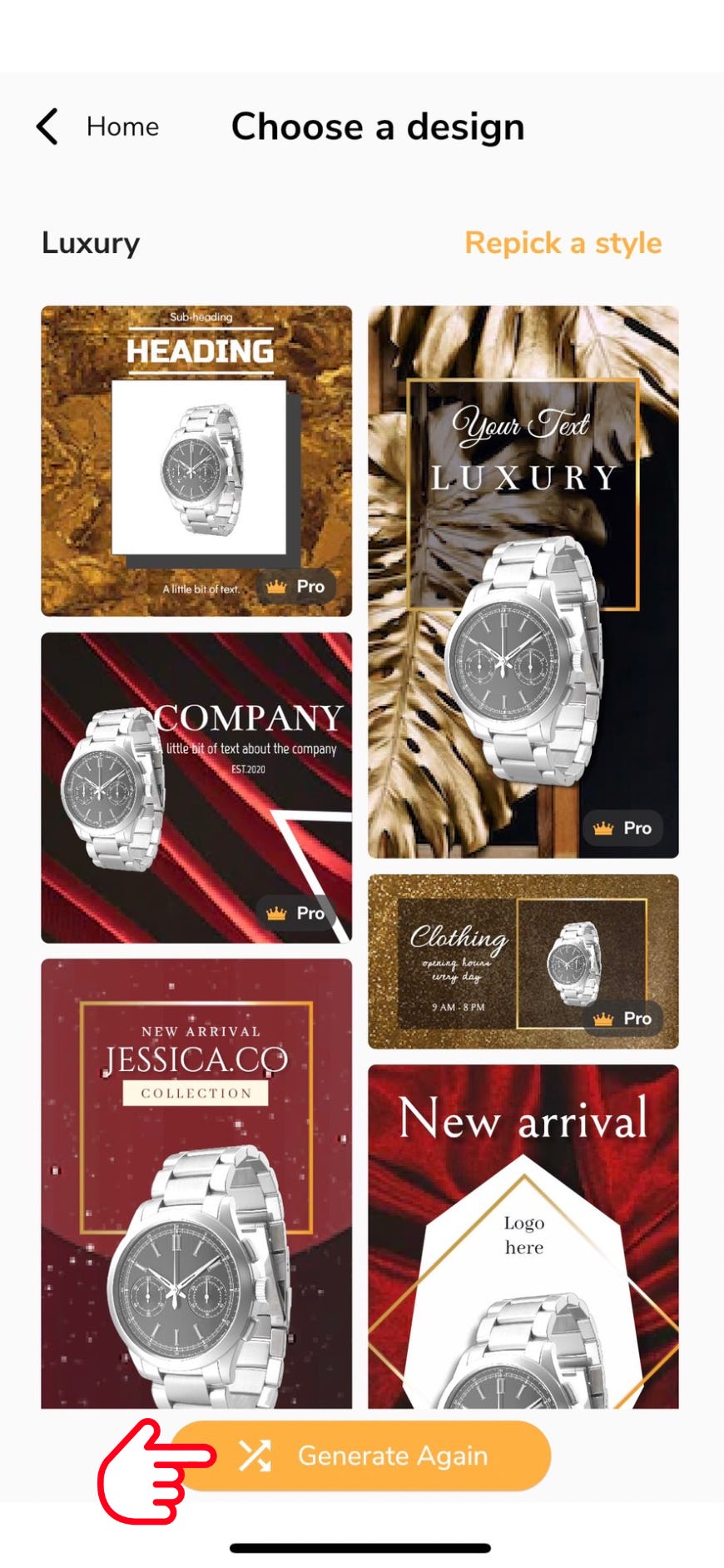 - AI will generate ready-to-use product template according to your selected style. Press Generate again to see more templates.