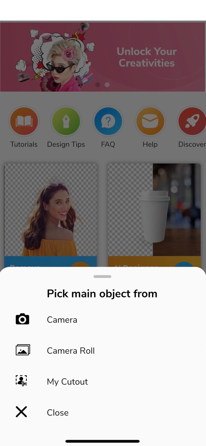 - Tap Camera to take a photo of your product or add your picture from Album / My Cutout.