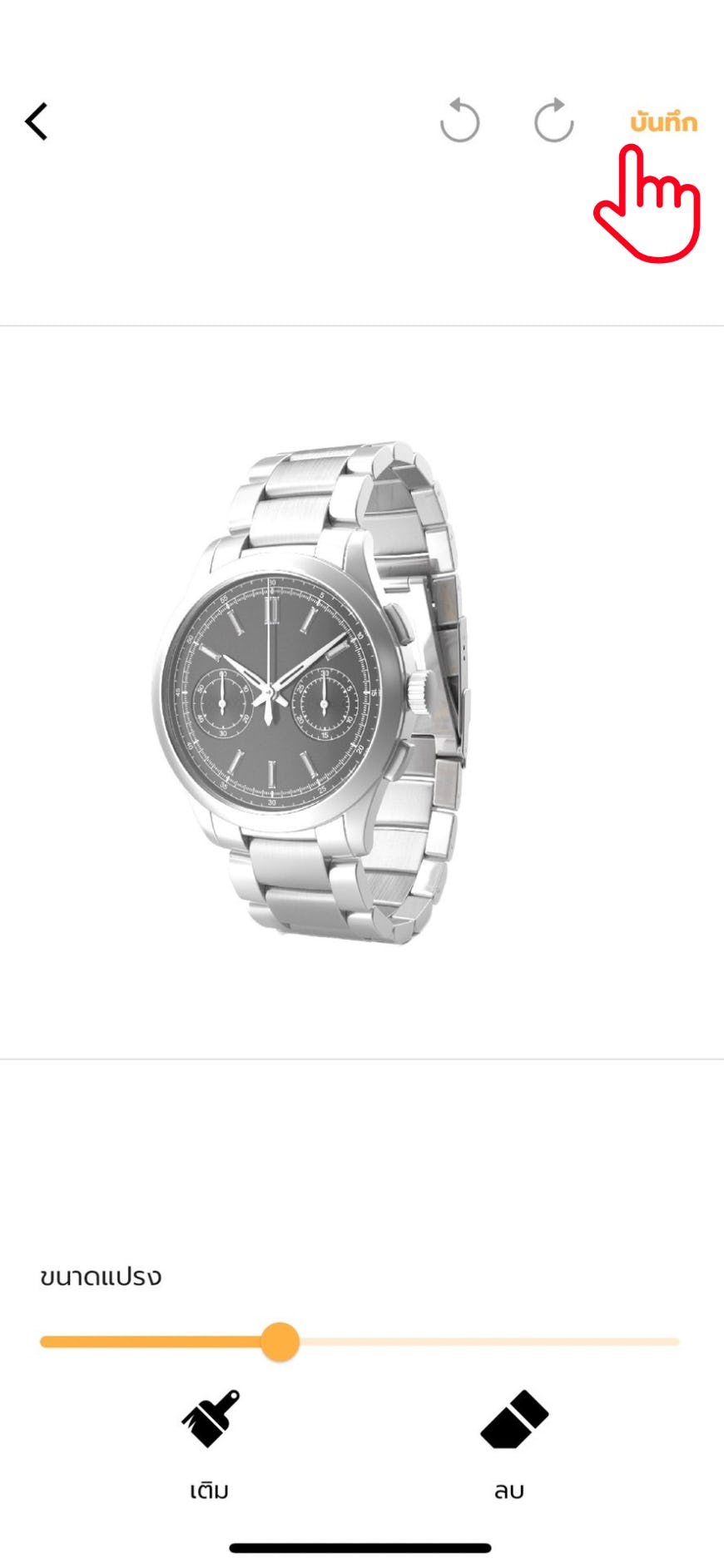 - เมื่อเลือกรูปเสร็จแล้ว AI จะทำการลบพื้นหลังออกให้คุณอัตโนมัติ จากนั้นกดปุ่มบันทึก