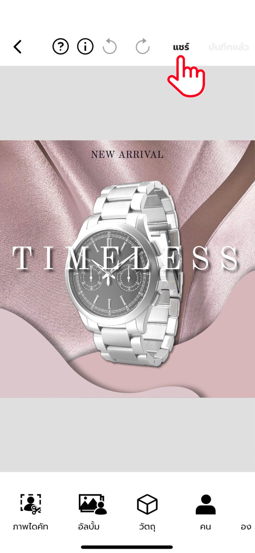 - เมื่อปรับแต่งเสร็จเรียบร้อย กดปุ่ม แชร์ เพื่อนำรูปไปใช้งานได้ทันที