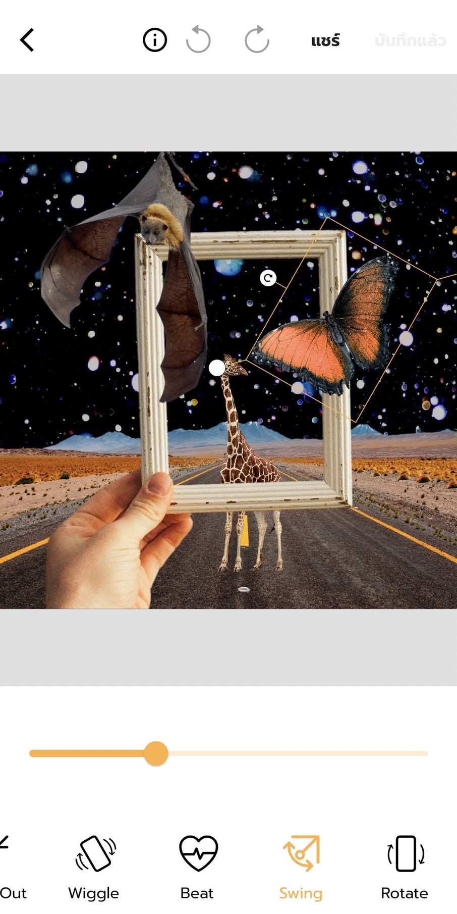 - เริ่มทำแอนิเมชันเพียงเลือกแตะภาพใดก็ได้ภายในชิ้นงานของคุณ กดปุ่ม แอนิเมชัน จากนั้นเลือกใช้ลูกเล่นได้ตามต้องการ
