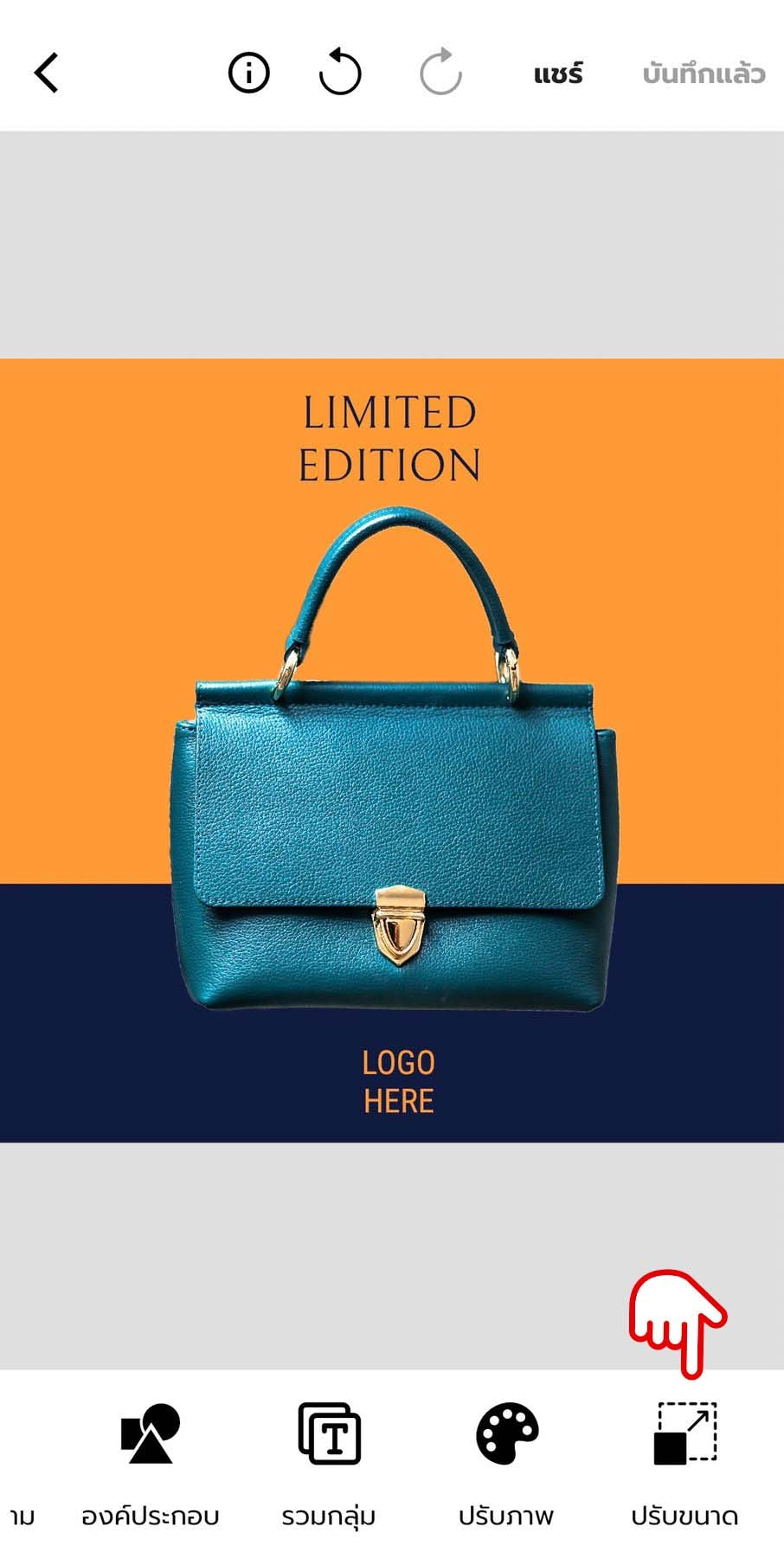- คลิกที่ปุ่ม ปรับขนาด ในแถบเครื่องมือด้านล่าง